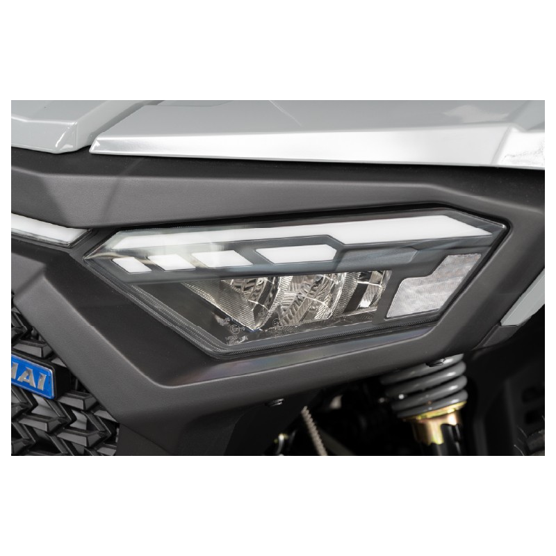 Equipamiento estándar: EPS (dirección asistida electrónica), respaldo trasero, pantalla digital TFT, protectores de manos, iluminación LED completa, protección delantera integrada, rejillas metálicas delantera y trasera, enganche de remolque, cabrestante.