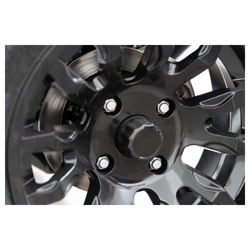 Cuenta con transmisión automática de velocidad variable (H/L/N/R), tracción 2x4/4x4 seleccionable, homologación T3b para dos plazas y llantas de aluminio.