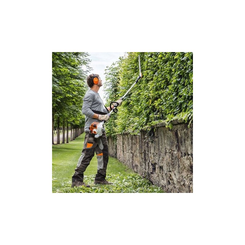Para el trabajo profesional de poda en altura, peso reducido, motor 2-MIX con ECOSPEED para regular la rotación del motor en grandes períodos de trabajo, especialmente en áreas sensibles al ruido. STIHL ErgoStart, engranaje ajustable a 145º, longitud de la hoja 50cm, longitud total 232cm
