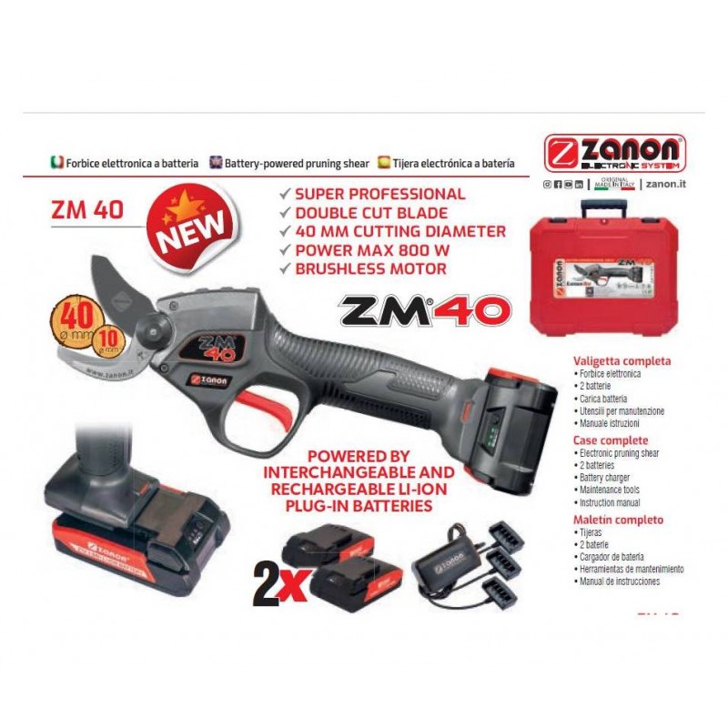 Permite cortes de hasta 40mm de diámetro, por lo que se recomienda su uso en viticultura, fruticultura y olivicultura. Las hojas de acero de alta resistencia permiten cortes limpios, precisos y sin rebabas.