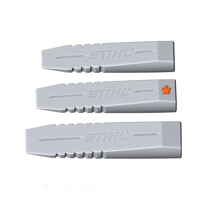 Cuñas de sacrificio y agrietamiento de aluminio Con hoja estrecha para una buena penetración en la madera. Tres modelos diferentes para diámetros troncales pequeños, medianos y grandes, paletas de retención, marca de referencia, lado de cuña lisa para la inserción posterior de una segunda cuña en el corte de la tala de árboles, aleación de aluminio de alta calidad.