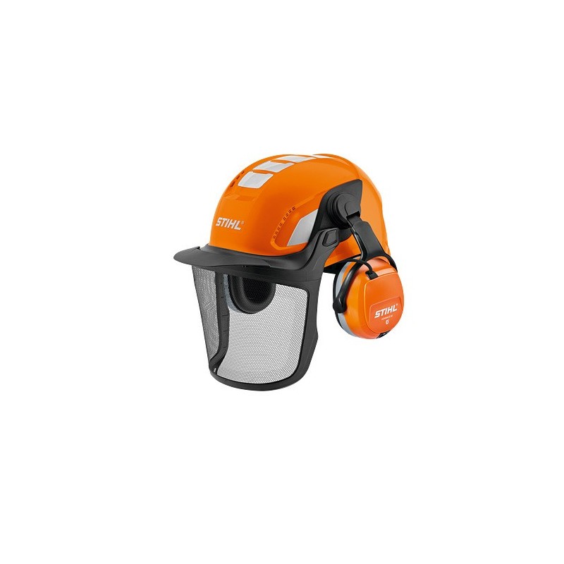 Ajuste progresivo. Alta resistencia al impacto. Visera protectora con 3 zonas de visibilidad. Con indicador de rayos UVA. Comp.: Transmisión visor de 18 cm: 75-80% cumple con las normas EN 352, EN 397, EN 1731.
