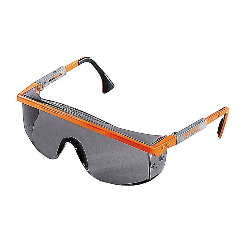 Gafas sencillas para uso ocasional. También es utilizable por personas que usan gafas. Protección frontal y lateral 100% UV. Marcos laterales y vidrio reemplazable. Cumple con la EN 166. Peso 35,3 g.