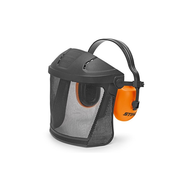 Tome la combinación con cápsulas que protegen los oídos (EN 352) para una buena reducción de ruido de hasta 104 dB (A) y visera de nylon giratoria (EN 1731). Arco ajustable de la cabeza