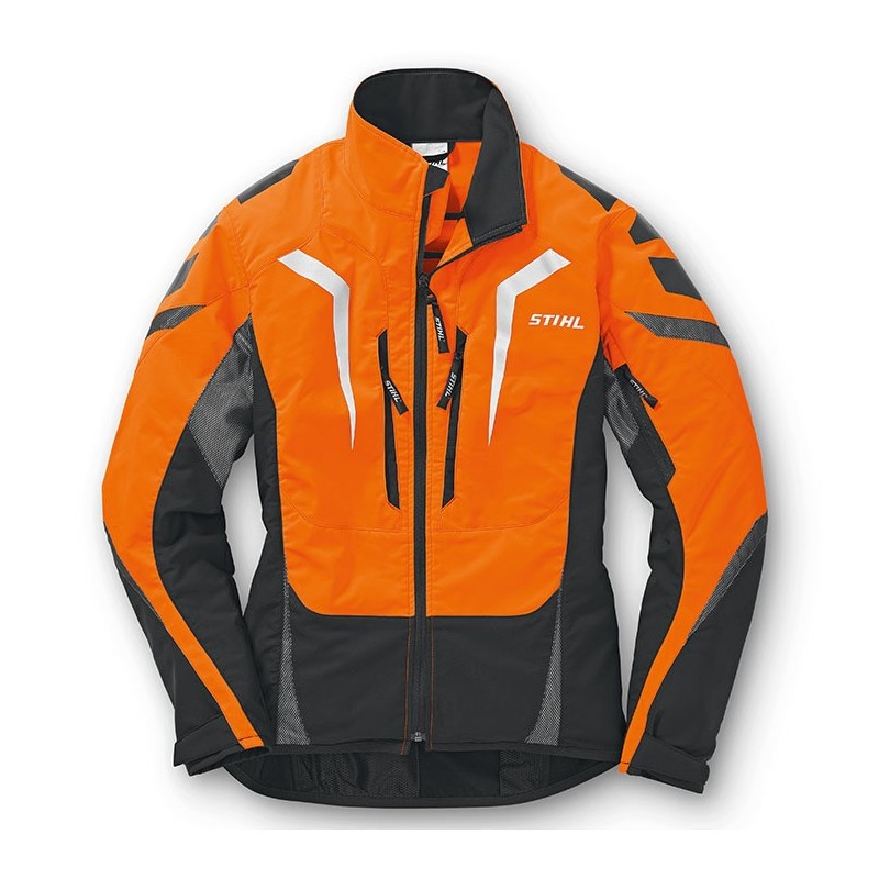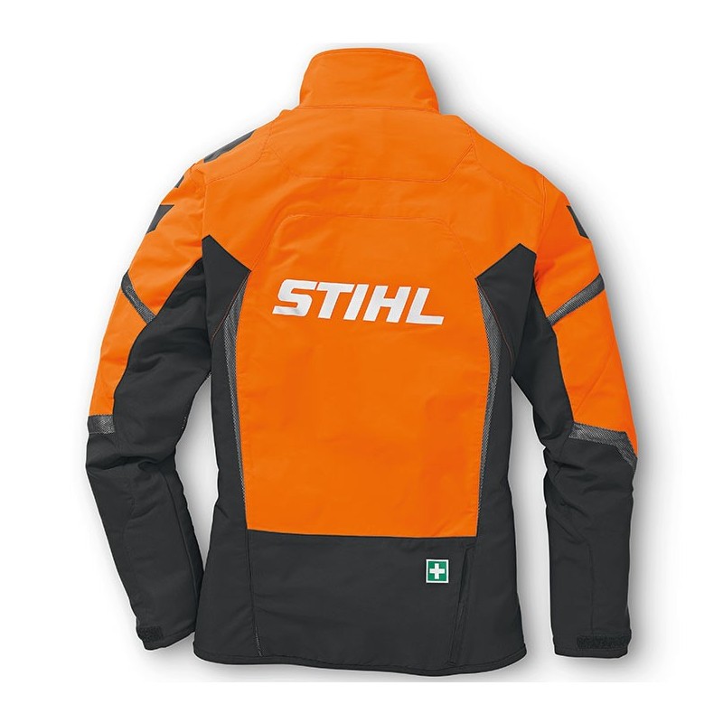 Ligera y muy transpirable. Particularmente recomendable para temperaturas muy calurosas o actividades corporales intensas. Está diseñada en color naranja de advertencia y negro, con forro de red en espalda, brazos y bolsillos para una mejor ventilación. Sus tejidos repelen el agua y la suciedad. Incorpora apliques reectantes, múltiples bolsillos y un gran logotipo STIHL en la espalda.