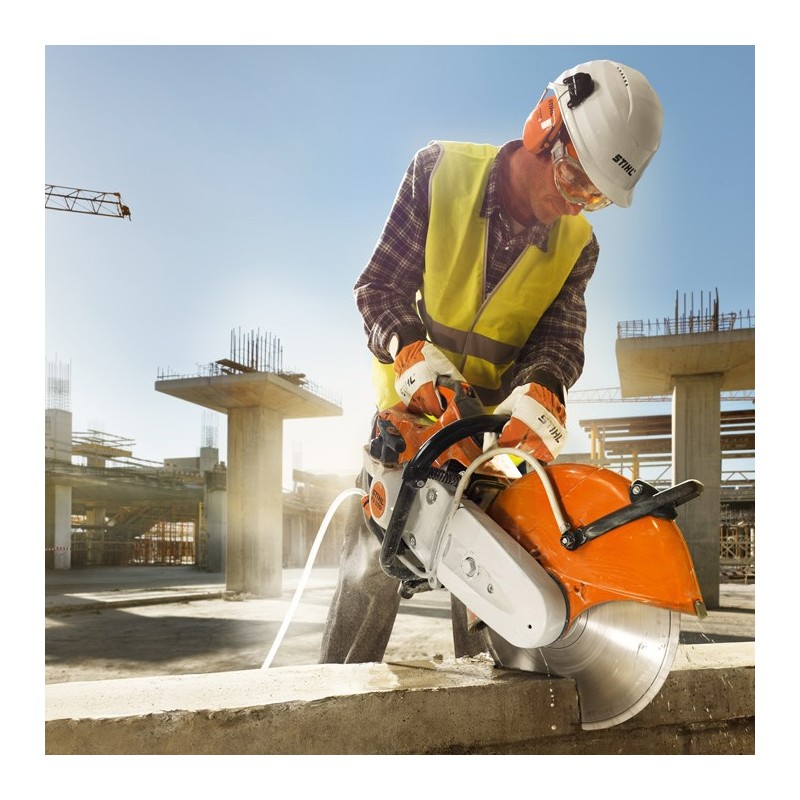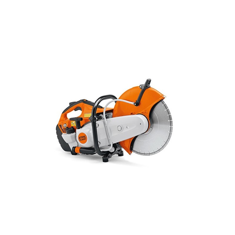 Para disco de corte de 350 mm. La cortadora TS 500i se diferencia por su sistema de inyección STIHL que es una inyección de combustible controlada por una computadora electrónica. Se trata de una exclusiva de STIHL y una primicia mundial en un dispositivo montado.