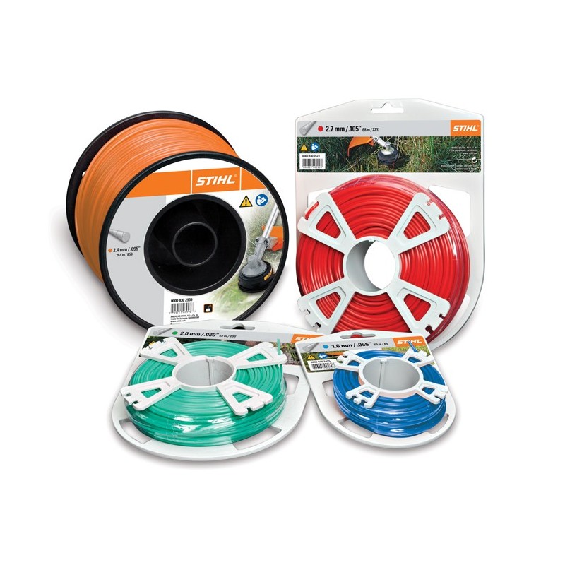 Fio de nylon resistente e de alta duração. A STIHL apenas utiliza materiais novos para garantir alta qualidade. Um único tratamento de fundição para uma maior resistência, menos roturas e mais produtividade. Disponível em diferentes diâmetros.