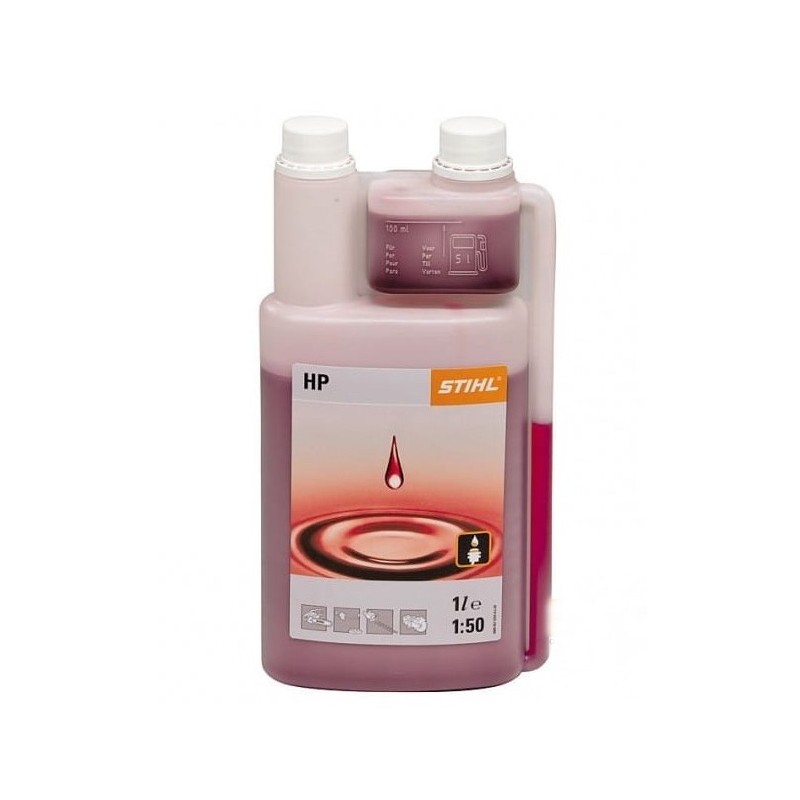 Óleo de motor à base de óleo mineral, especialmente desenvolvido para os elevados requisitos dos dispositivos a motor. Propriedades de lubrificação e de combustão muito boas, JASO-FB, ISO-L-EGB, relação de mistura 1 : 50, adequado para todos os motores STIHL.