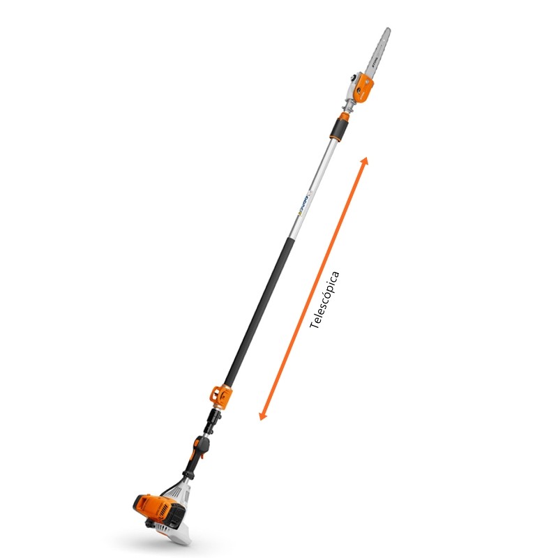 Robusta e eficiente, é a mais potente da linha STIHL. Projetado para desgalhar árvores, remover madeira morta ou danificada e podar árvores frutíferas, é equipado de série com um arnês. Ideal para profissionais e comunidades de manutenção de árvores e fruteiras, pode atingir facilmente galhos de até 5 metros acima do solo.